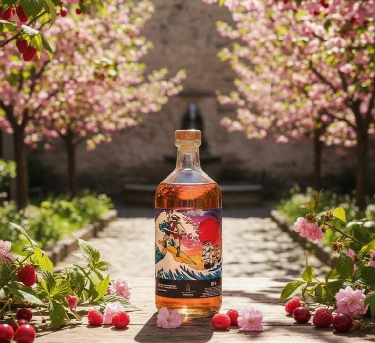 El Kamikaze Patagónico es el London Dry de Magallanes macerado con cerezas y frambuesas, logrando un perfil frutal intenso pero bien balanceado.